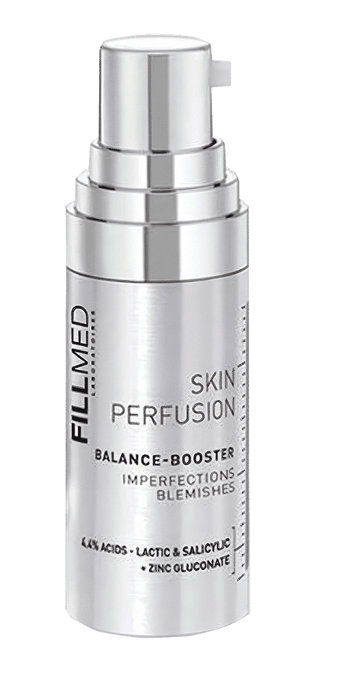 The FILLMED Balance Booster is an exceptional and innovative serum designed for optimal effectiveness. This serum targets imperfections and purifies the skin, offering a comprehensive solution. Combining two exfoliating acids, it works synergistically to refine skin texture and promote a clearer complexion. With its purifying properties, it effectively controls shine. Incorporate FILLMED Balance Booster into your skincare routine to gently exfoliate the skin, eliminating dead skin cells, and reducing the appearance of pores and uneven skin texture. Enriched with 2.4% Lactic acid and 2% Salicylic acid renowned for their ability to prevent and diminish spots and blemishes, alongside zinc gluconate to purify the skin and achieve a mattifying effect.