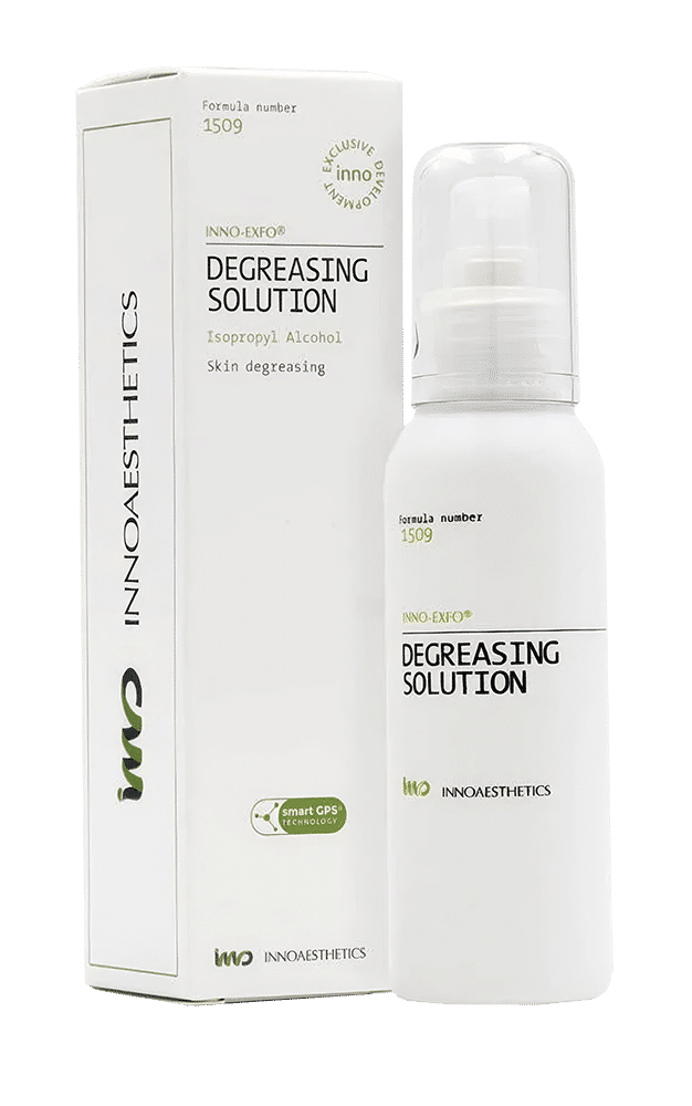 The degreasing solution serves as a pre-peel cleanser meticulously crafted to eliminate sebum, deeply cleanse, and disinfect the skin prior to any INNO-EXFO treatment. It effectively eliminates surface oils and bacteria, ensuring optimal skin preparation for the thorough penetration of active ingredients.