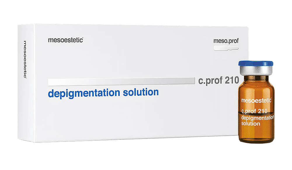 The Mesoestetic c.prof 210 depigmentation solution represents a potent fusion of active components aimed at correcting pigment irregularities and providing antioxidant benefits. This solution effectively regulates melanin synthesis, thereby addressing the presence of melanin within epidermal cells responsible for visible pigmentation. Additionally, it incorporates antioxidant properties that help regulate excessive melanin production.