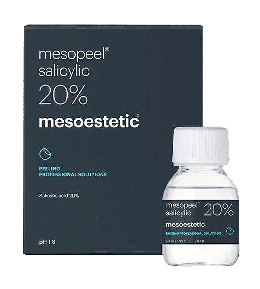 Mesoestetic Mesopeel Salicylic 20% acid peel delivers potent keratolytic and sebum-regulating effects. Designed for oily skin prone to imperfections, acne, and/or seborrhea. Recommended for application on body areas such as arms, back, knees, elbows, etc.
